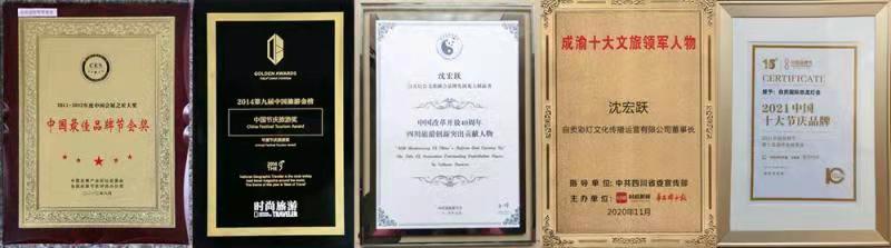 2017年7月,自貢燈會在第六屆中國民族節慶峰會暨“2017中國優秀民族節慶”評選活動中榮獲“最具國際影響力”大獎,公司總經理、自貢燈會總策劃師沈宏躍獲“2017年度優秀節慶人物”殊榮。