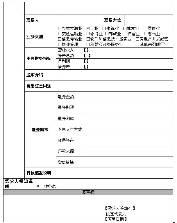 附件:融資人申請表